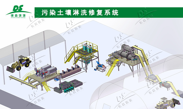 污染土壤淋洗修復(fù)主要是借助能促進土壤中污染物溶解或遷移的化學(xué)/生物溶劑,通過一系列物理、化學(xué)的綜合處理工藝對污染土壤進行洗潔修復(fù)處理,將附著于土壤顆粒表面的重金屬由固相低濃度污染物轉(zhuǎn)移至液相,以便于后續(xù)集中處理。土壤中砂石骨料經(jīng)淋洗分級處理后可回收利用,淋洗泥漿經(jīng)脫水后泥漿固料若檢驗達標(biāo)可安全回填、或進入熱脫附修復(fù)系統(tǒng)進一步處理,脫水后廢液進入水處理系統(tǒng)集中處理。整套淋洗修復(fù)系統(tǒng)可最大程度實現(xiàn)對污染土壤的減量化綜合處理。
